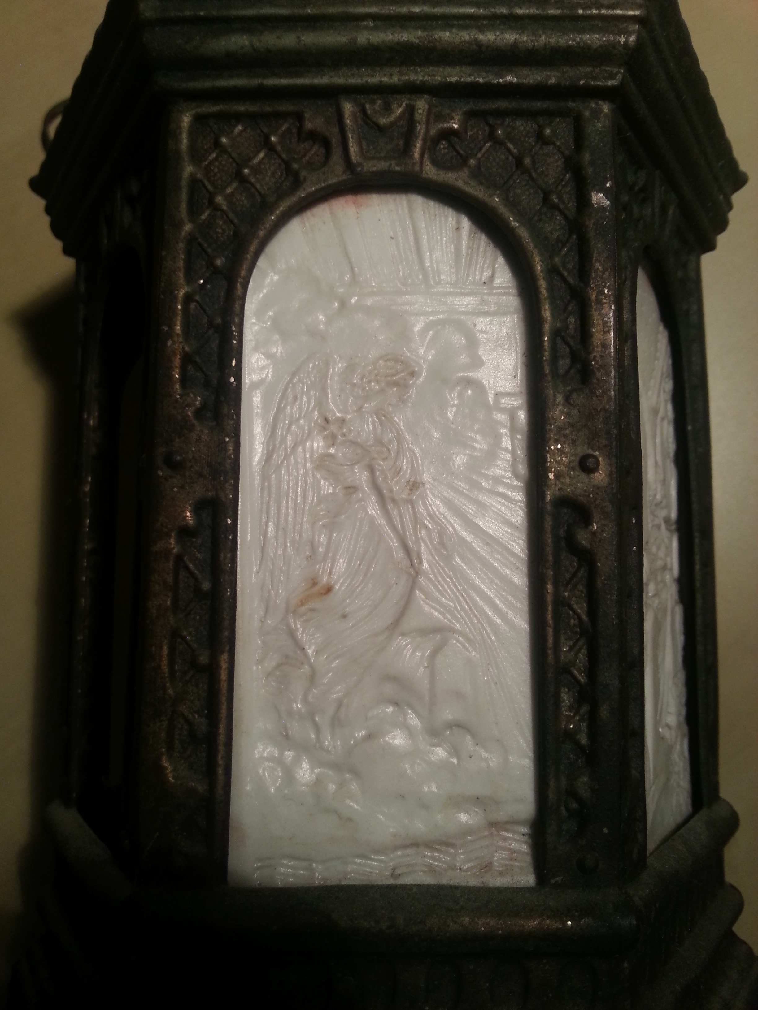 Mich hat bei dieser Laterne beeindruckt, daß die Platten bei Tageslicht ziemlich häßlich aussehen. Wird allerdings im Dunkeln eine Kerze angezündet, kommt der dreidimensionale Effekt zur Geltung. seht selbst:
