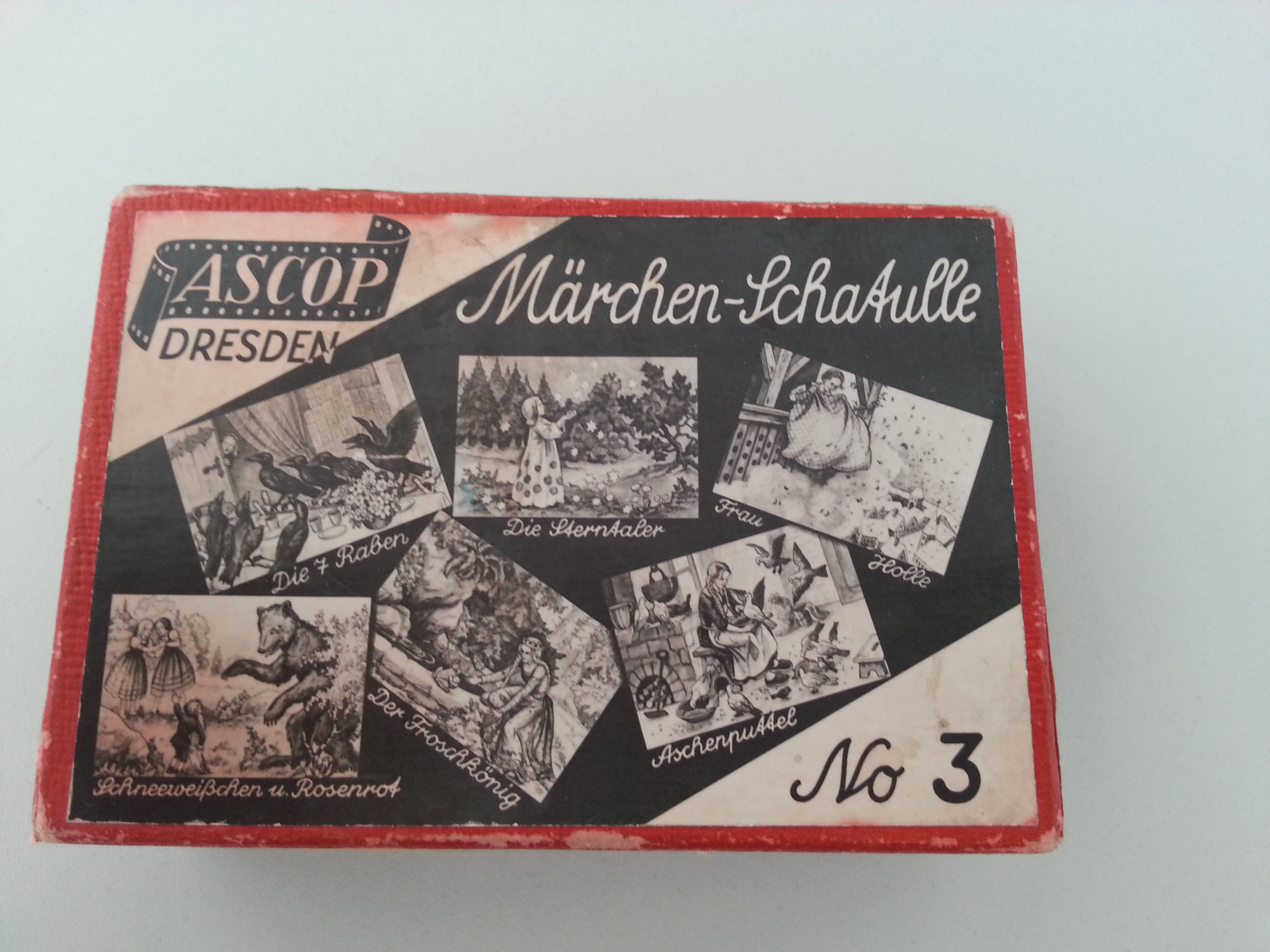 Passend zum Jugend-Bildwerfer / Laterna Magica ist in einem Karton diese Märchen-Schatulle zum Vorschein gekommen.
