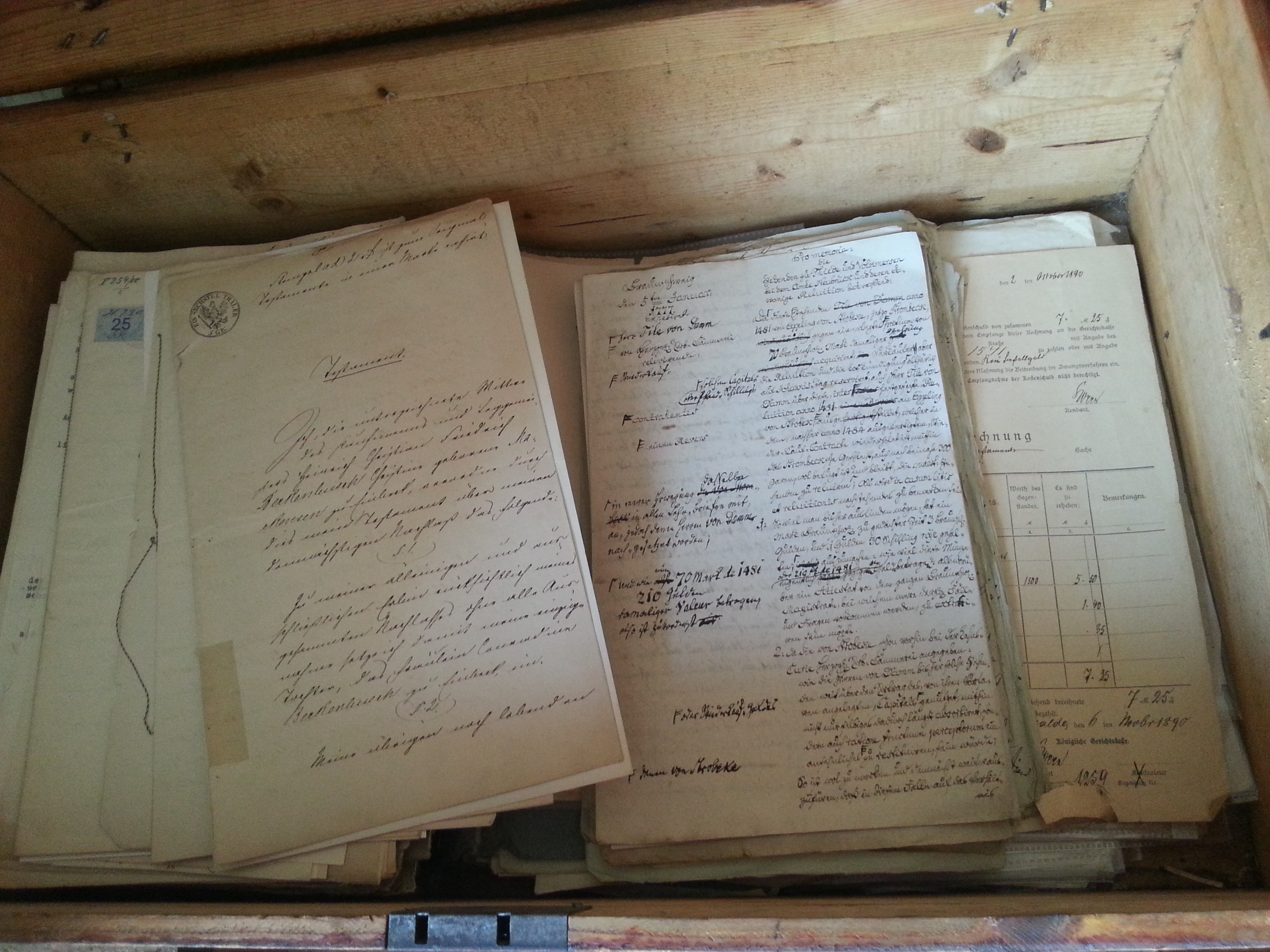 Zu hause angekommen fing dann die Sichtung an. Es gibt Rechnungshefte in denen Einnahmen und Ausgaben akribisch notiert sind, Briefe an und von Notaren, Assessoren und Bauern, Pacht-Verträge, Lehns-Listen, Quittungen, Rechnungen aus den Jahren 1694 bis in die 1920er Jahre.