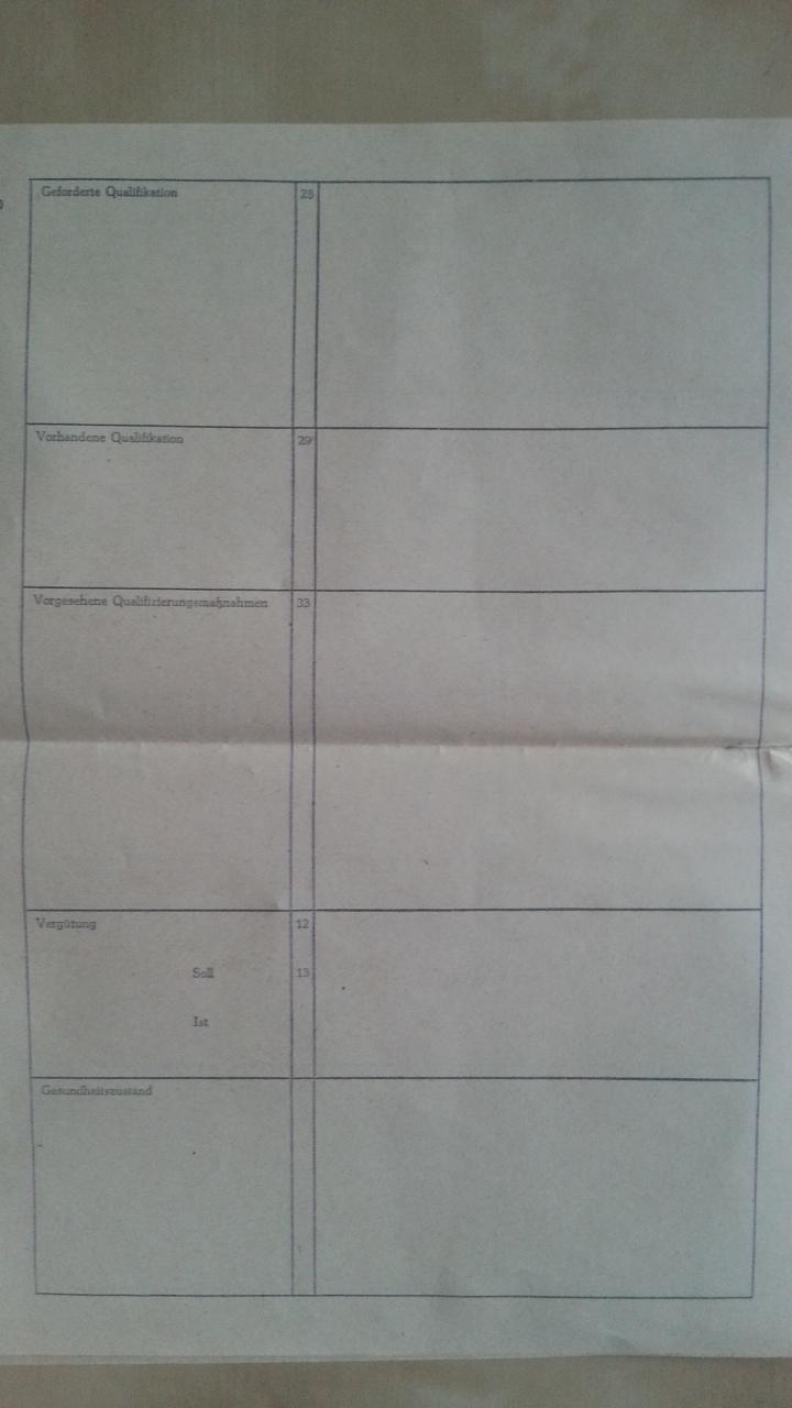 Dieser Personalbogen stammt aus dem Jahr 1969 und ist noch unbenutzt.