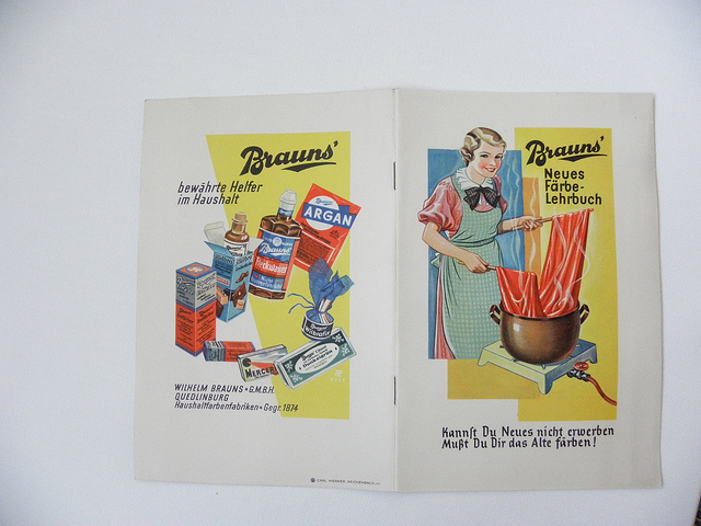 Wie allgegenwärtig die Firma war, sieht man hier. Es gab das Färbe-Lehrbuch um zu lernen, wie Wäsche am besten gefärbt werden sollte,