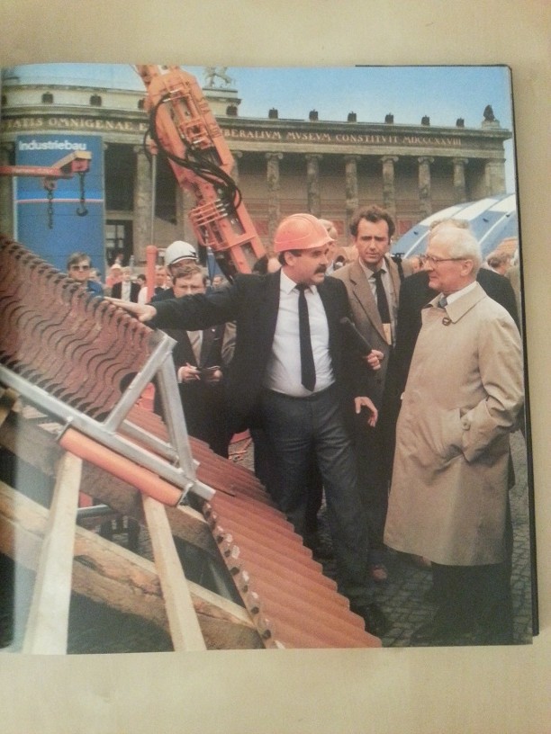 Erich Honecker informiert sich über die Pläne des Wohnungsbaus. Die Häuser des Nikolaiviertels (siehe Bild oben) sind ja erst in den 1980er Jahren in Plattenbauweise wiedererrichtet worden. Auf die Plattenhäuser wurden dann allerdings Dachziegel-Dächer gepflanzt. Das sah damals ganz toll aus. Wenn man heute dort lang läuft, ist der Charme allerdings etwas verflogen.
