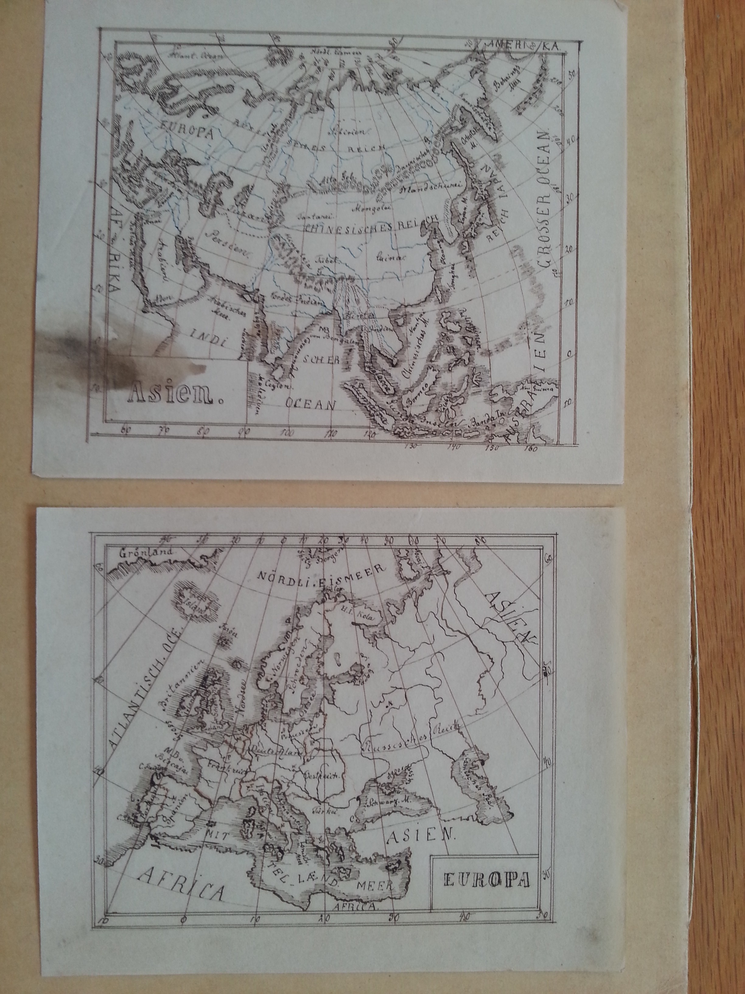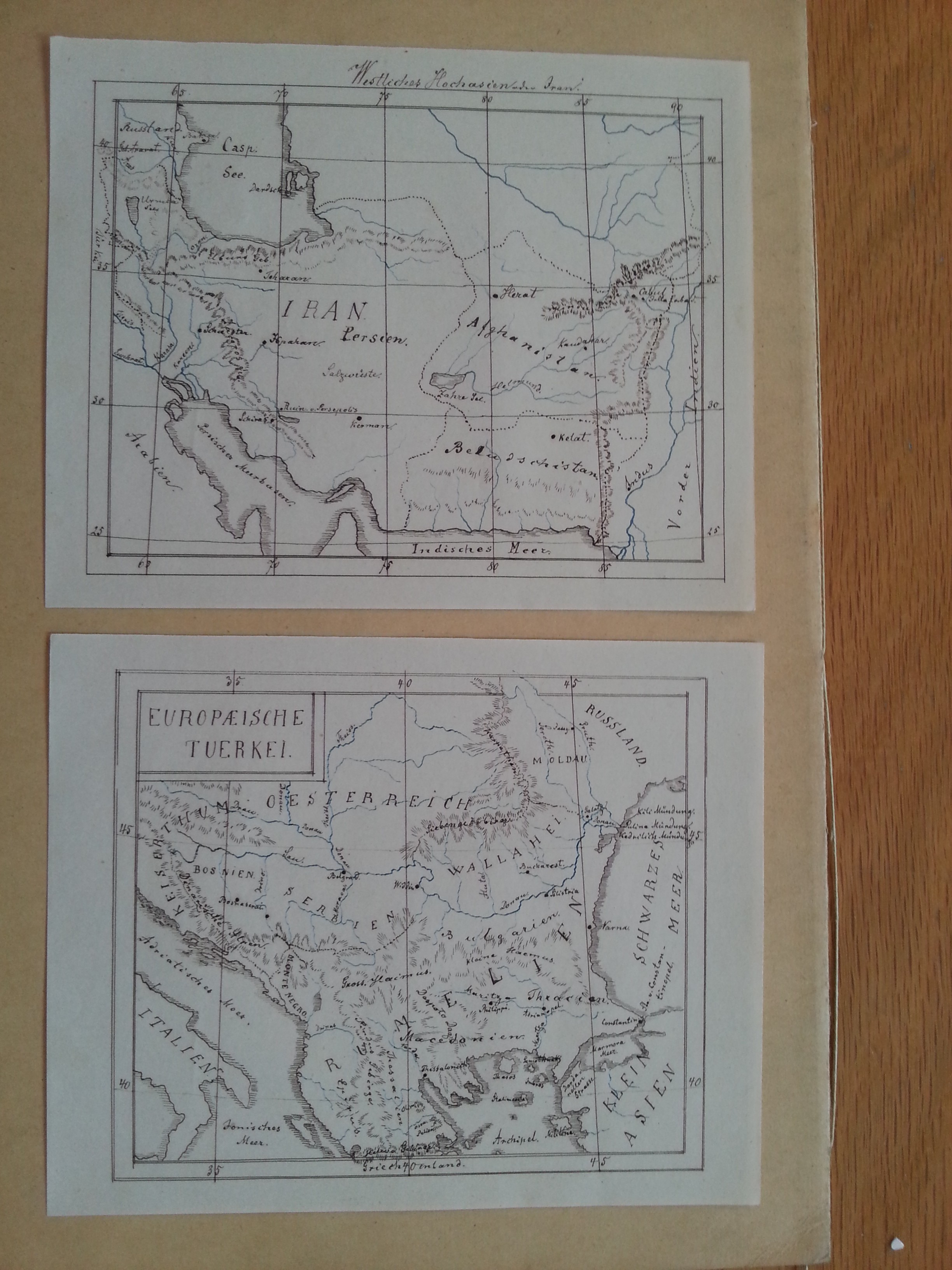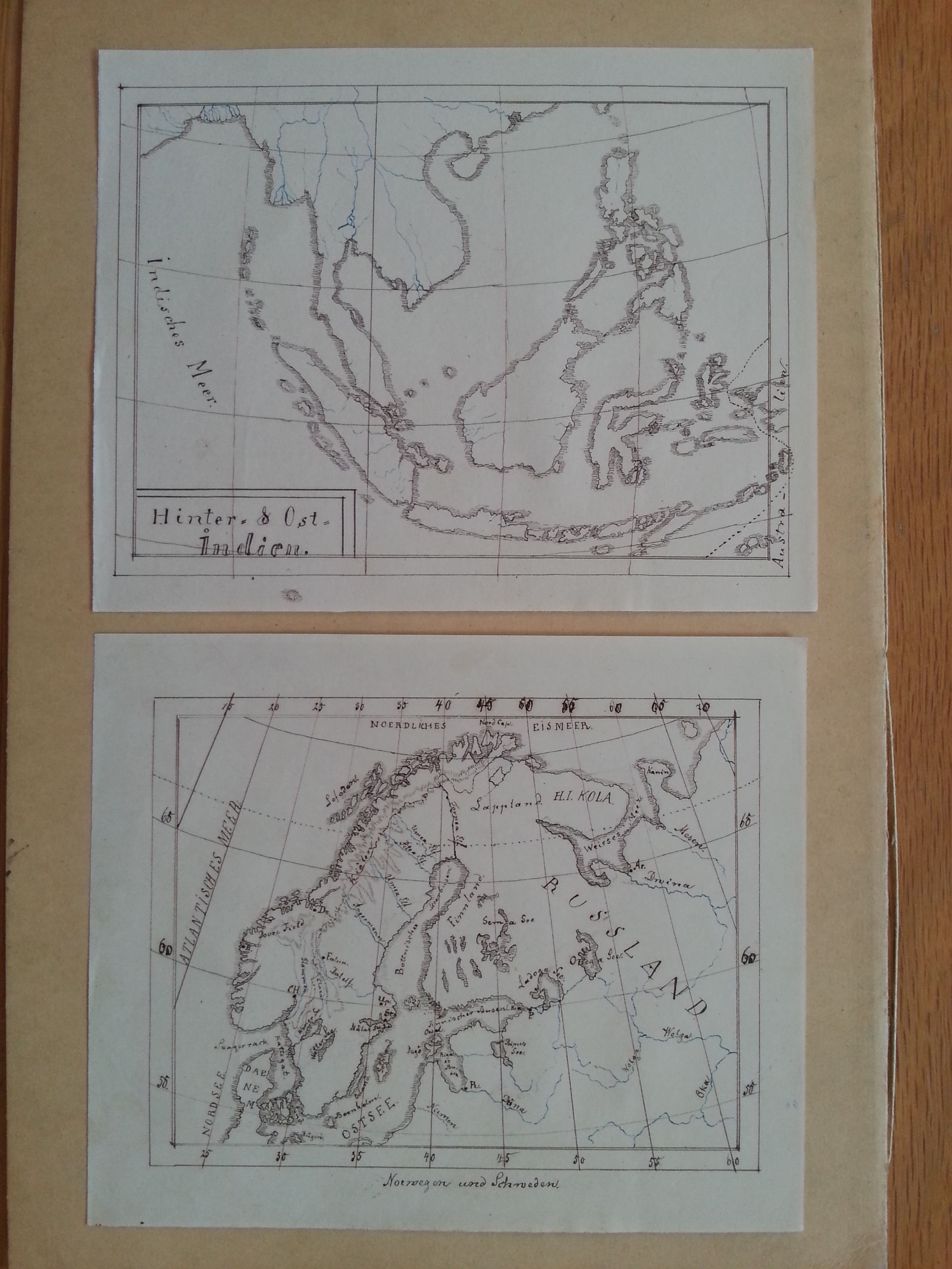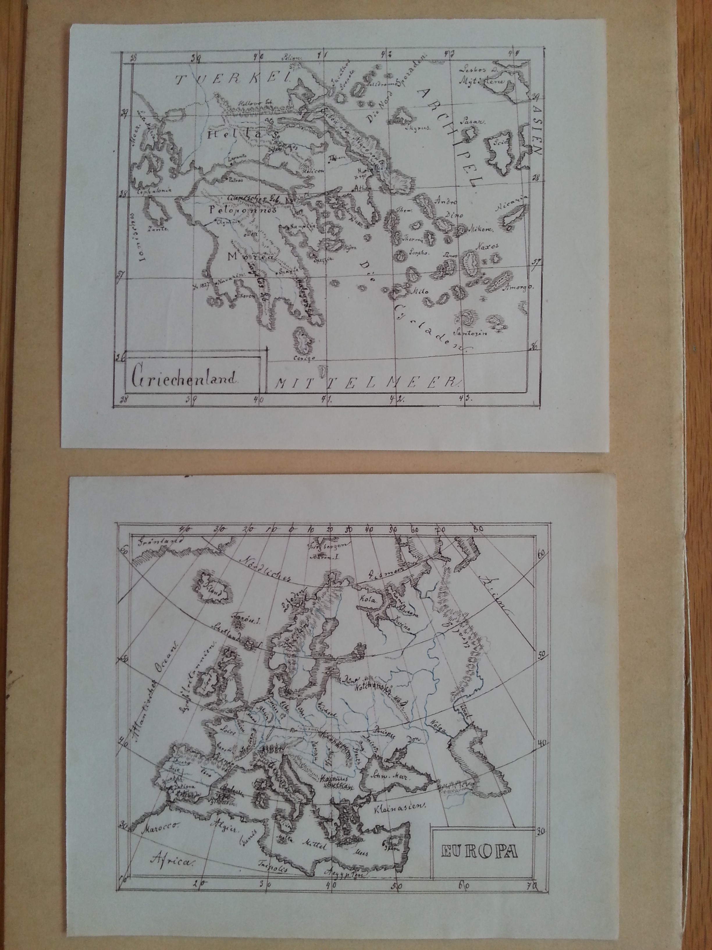 Irgendjemandem ist es offenbar so ergangen und er hat losgezeichnet. Das Papier ist zwar nur sehr dünn und geeignet, es auf einen Atlas zu legen und die Karten abzuzeichnen, allerdings erscheint mir die Beschriftung doch etwas holprig um sie als durchgezeichnet anzunehmen.
