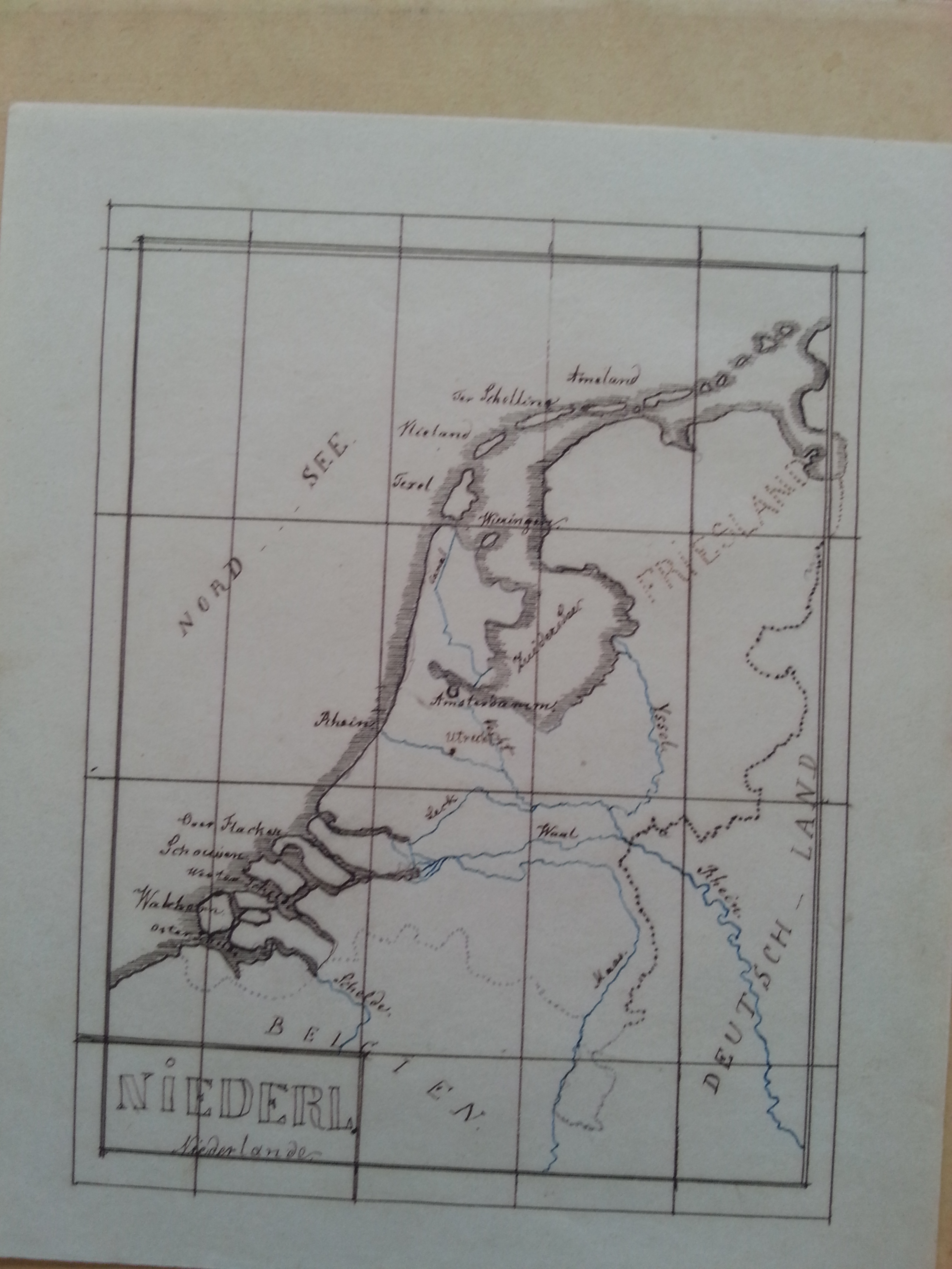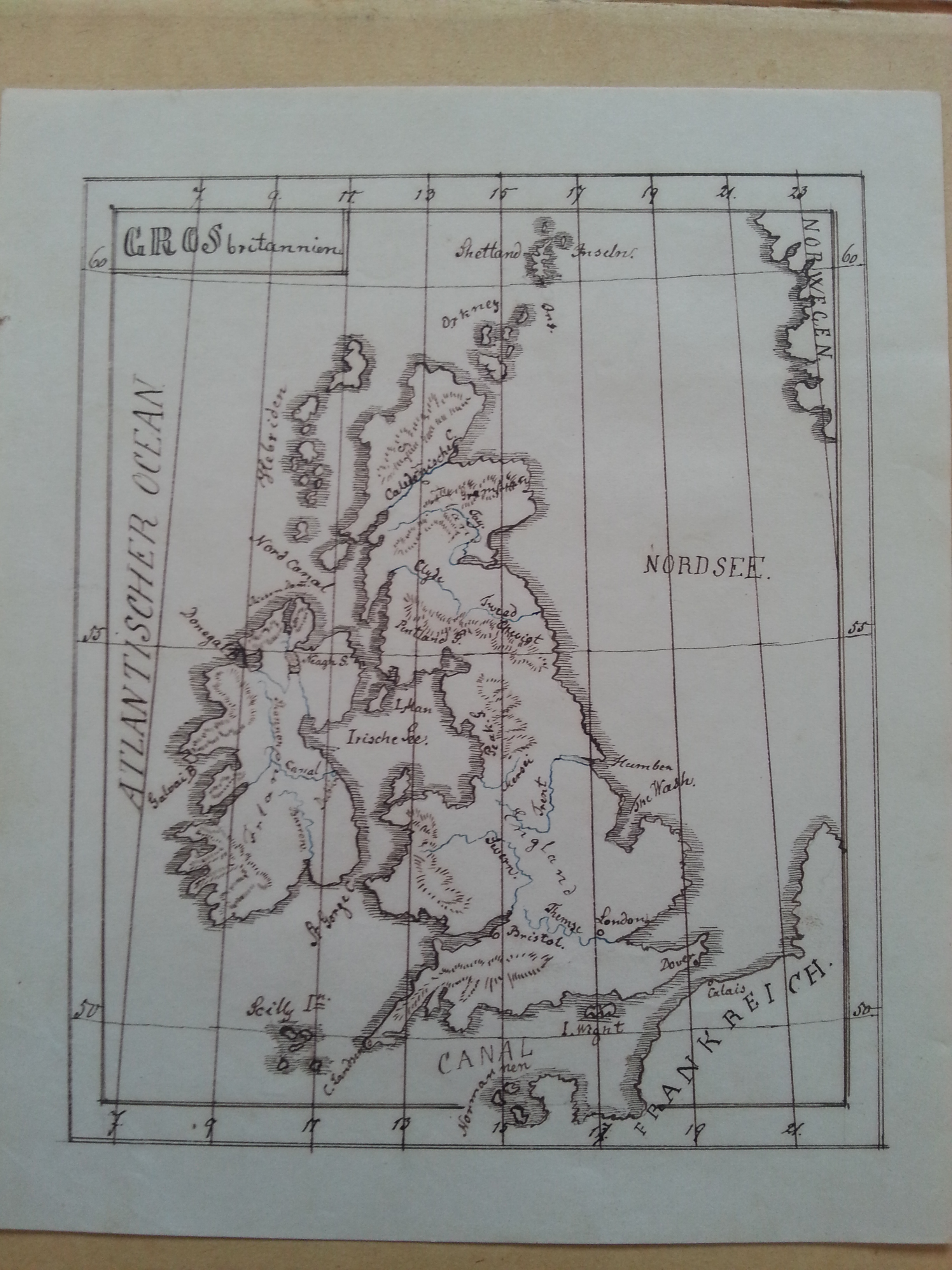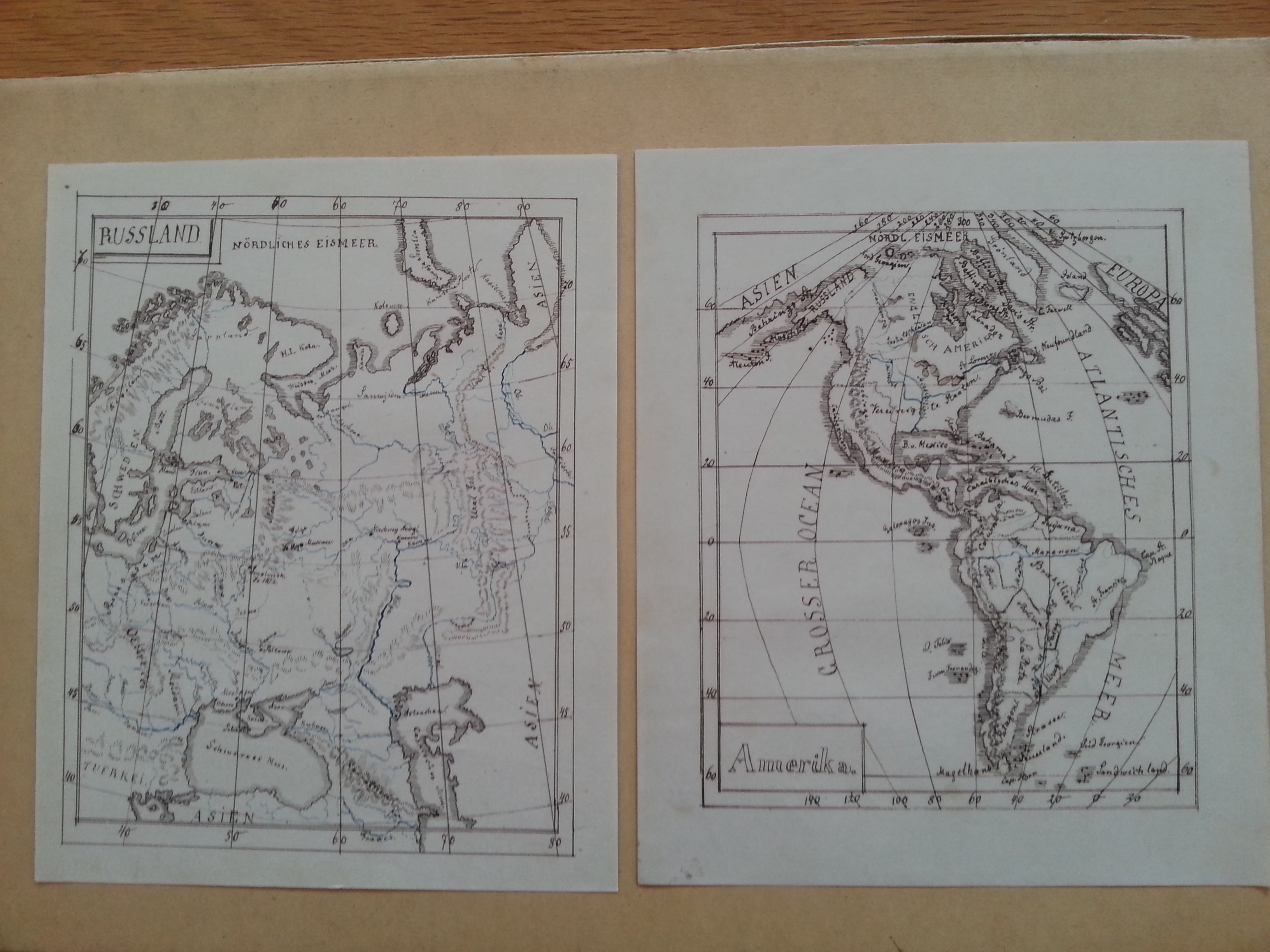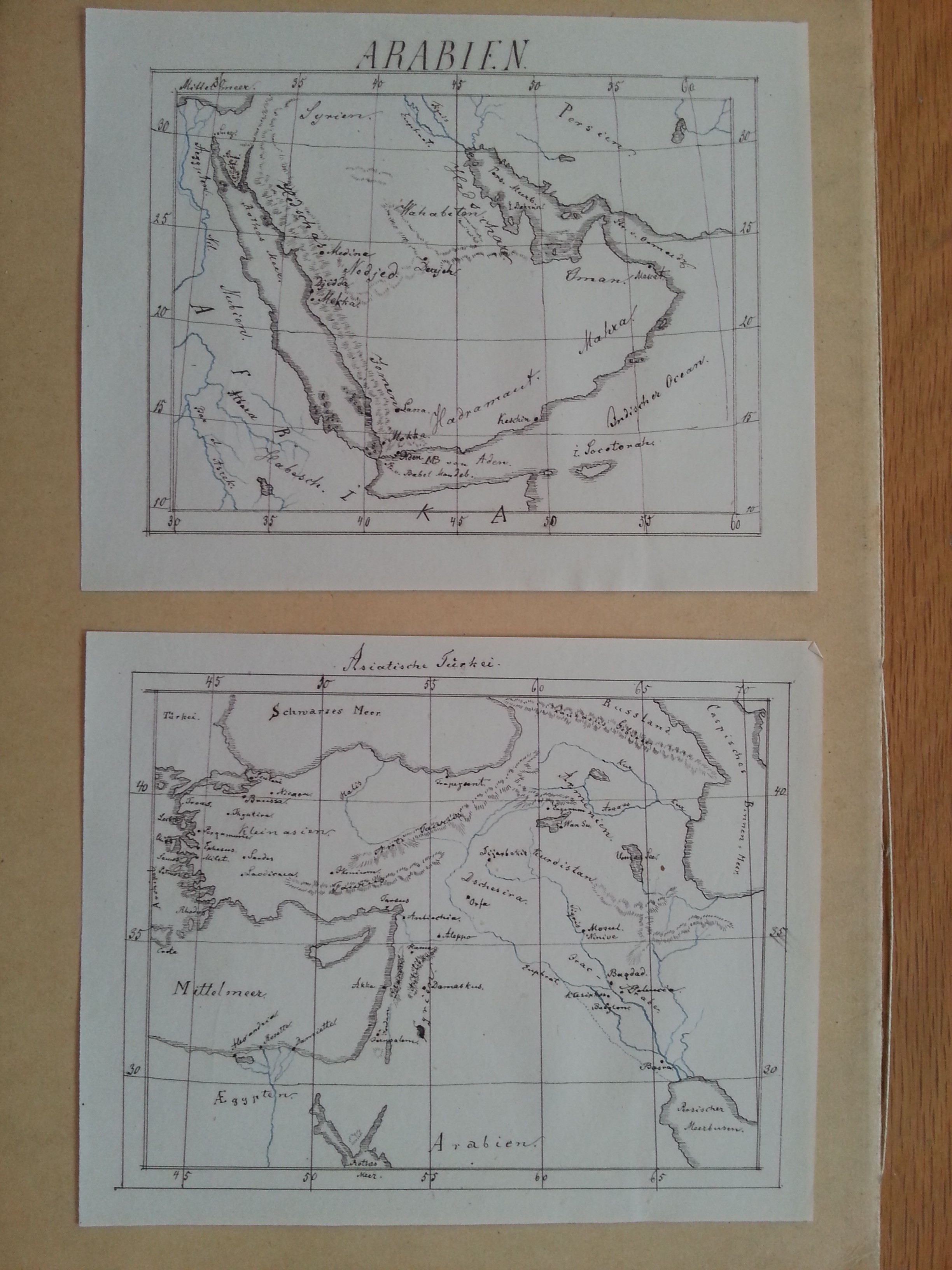 Irgendjemandem ist es offenbar so ergangen und er hat losgezeichnet. Das Papier ist zwar nur sehr dünn und geeignet, es auf einen Atlas zu legen und die Karten abzuzeichnen, allerdings erscheint mir die Beschriftung doch etwas holprig um sie als durchgezeichnet anzunehmen.