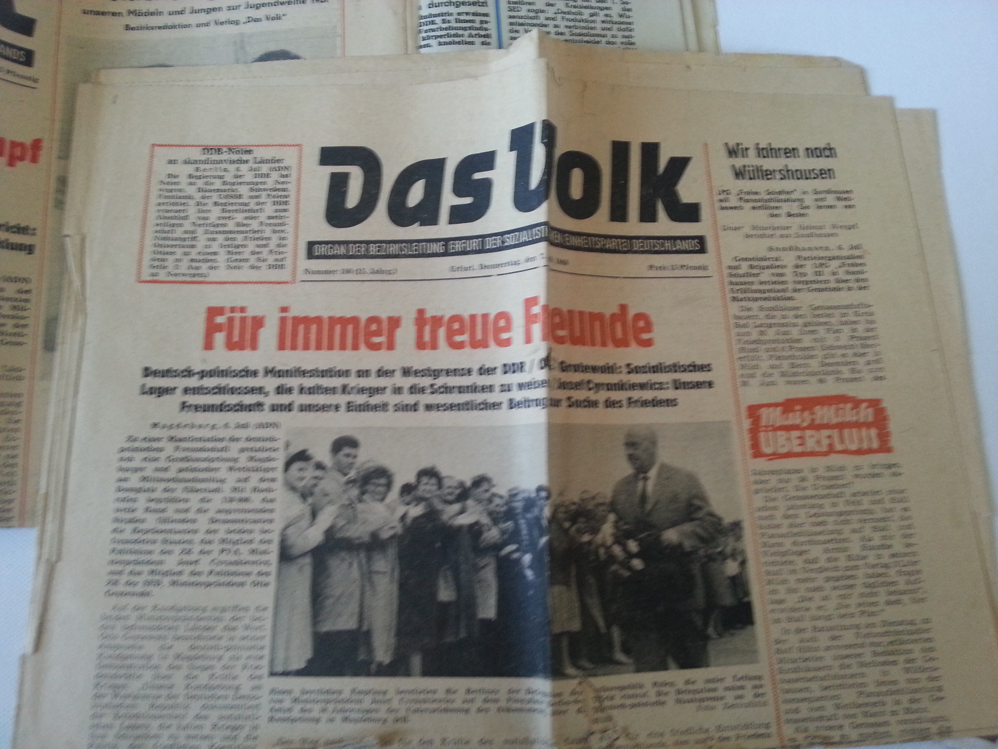 Es gab natürlich noch andere Zeitungen in Erfurt. Die Thüringer Neuesten Nachrichten waren „Das Blatt des Bezirksverbandes der National-Demokratischen Partei Deutschland (NDPD – was aktuell sehr rechts klingt. War es damals aber nicht!)