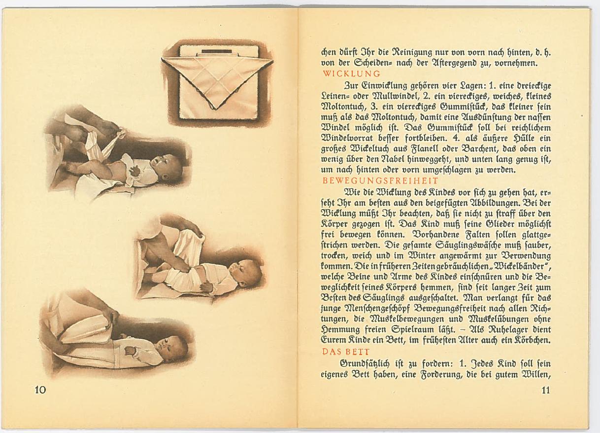 1938 konnte selbst die Geburt eines Kindes, die damit verbundenen Pflegetipps und die Ernährung des Babys nicht ohne völkische Hinweise vonstatten gehen.