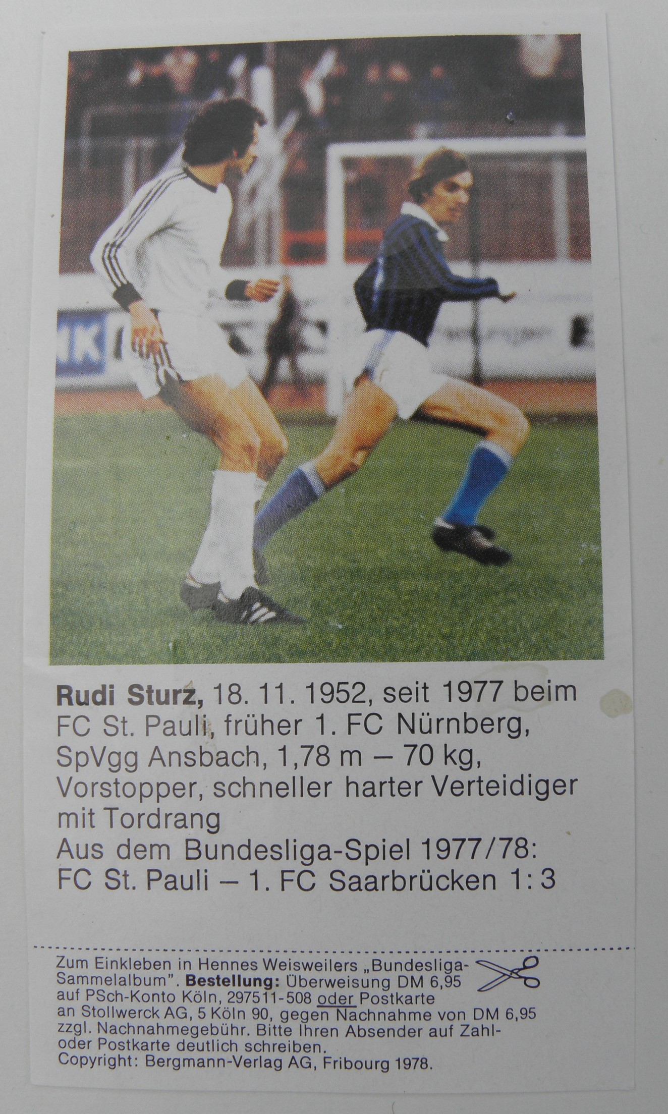 Heute gibt es nur etwas Kleines. Ein Fußball-Sammelbild von 1978. Damals war Deutschland erst zweimal Weltmeister geworden.
