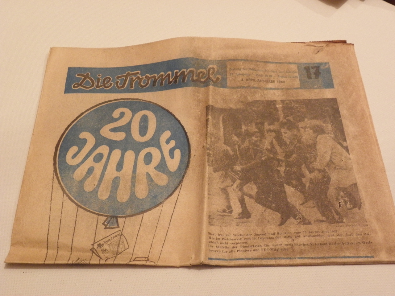 Die Zeitung der Thälmann-Pioniere in der DDR hieß „Trommel“. Sie erfreute den eifrigen Pionier mit lustigen Geschichten, die bereits auf Schüler der 4. bis 7. Klasse zugeschnitten waren. Sie baute somit auf die FröSi auf. Allerdings fand man überwiegend politisch angehauchte Beiträge. Der Untertitel der Zeitung hieß übrigens toleranterweise „Die Zeitung für Thälmannpioniere und Schüler“. Für noch Ältere gab es die „Atze„, aber das war mir zu politisch. (Leider waren die Fix & Fax-Mäusegeschichten ausgerechnet auf der Rückseite DIESER Zeitschrift)
