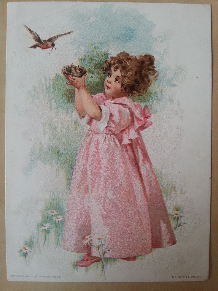 Hier ist eine Reihe von Werbekärtchen aus den Jahren um 1895 herum. Beworben wurde Kaffee. In der Zeit kurz vor der Jahrhundertwende waren diese kleinen Chromolithographie-Karten sehr beliebt. Nicht zuletzt, weil Kinder die Eltern baten, doch wieder Kaffee von Lion oder McLaughlin zu kaufen, um eine neue Sammelkarte zu bekommen.