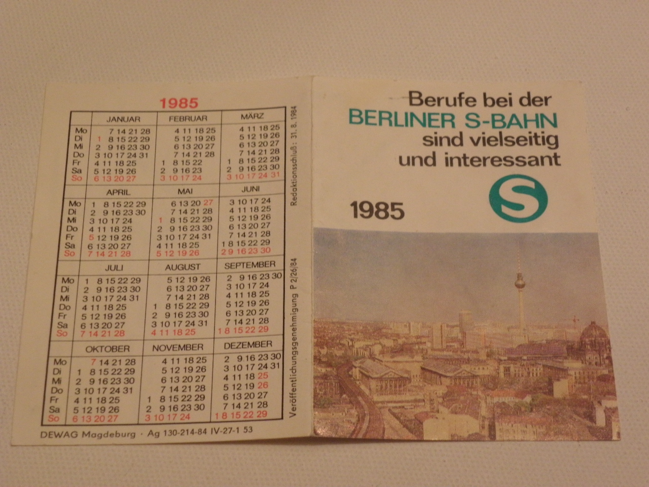 Aus dem Jahr 1985 stammt unser heutiger Artikel des Tages – ein Taschenkalender mit Fahrplan. In diesem Jahr hatte ich meine aufmüpfige Phase. Schwerter zu Pflugscharen- und Greenpeace-Aufnäher an der Jacke, lange Haare, Junge Gemeinde und mein erster Eintrag in die neu angelegte Stasi-Akte als „Aufsucher einer nichtsozialistischen Botschaft“ (dabei war ich nur in der Bibliothek in US-Botschaft). Hat mir mein Abi- und Studium-Verbot in der DDR eingebracht.