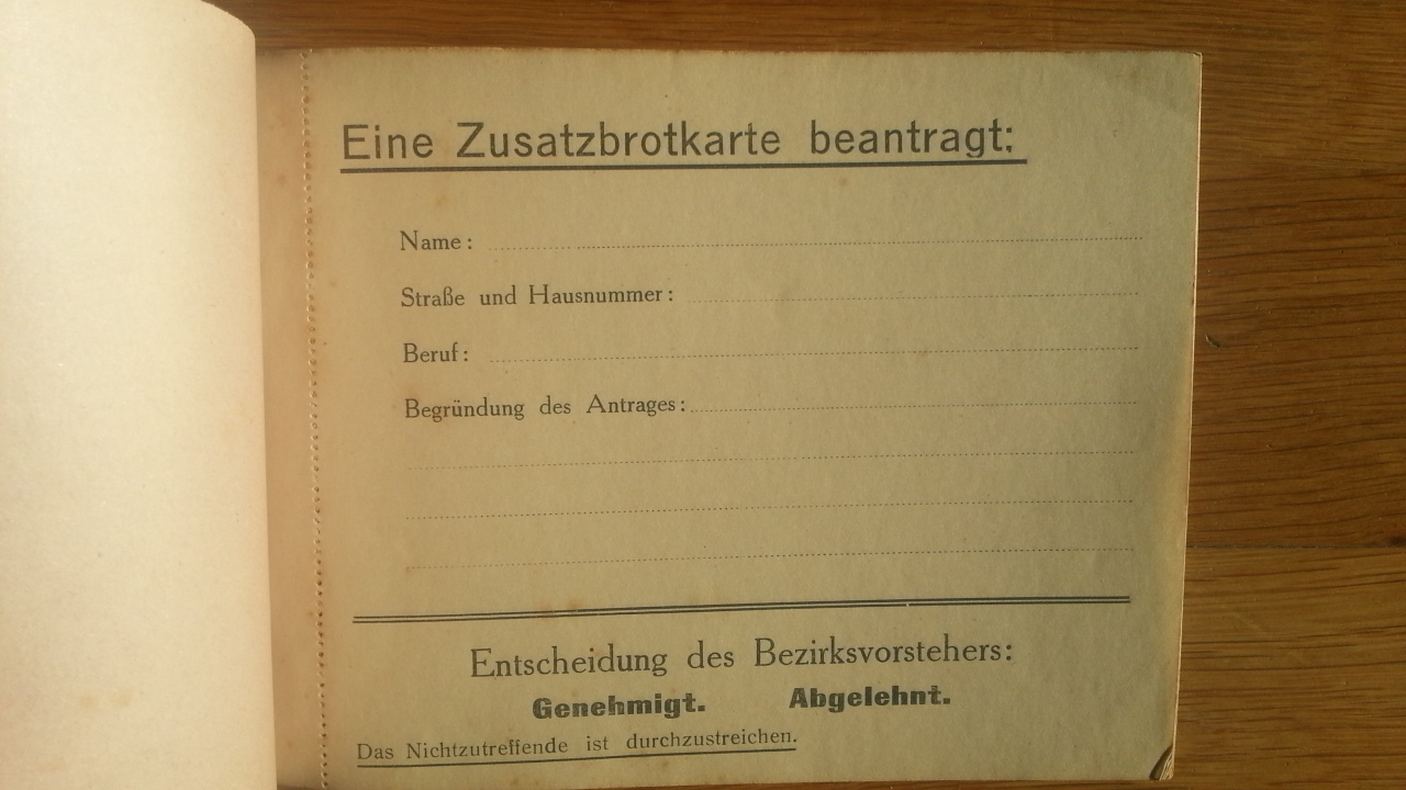 Wer genau berechtigt war, zusätzliche Brotkarten zu beantragen, ist mir unbekannt. Meine Vermutungen: