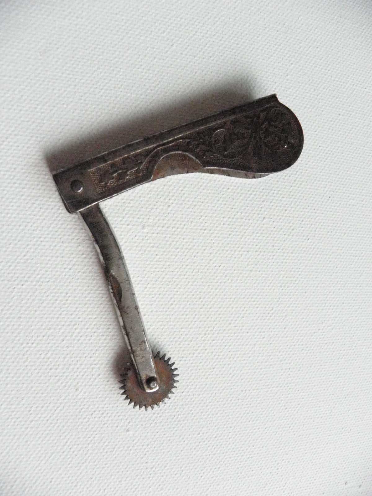 Das Werkzeug sieht übrigens so aus und überträgt die Zeichnung auf das Seidenpapier. Nun kann man sie leicht herauslösen und als Schablone auf den Stoff auflegen und ausschneiden.