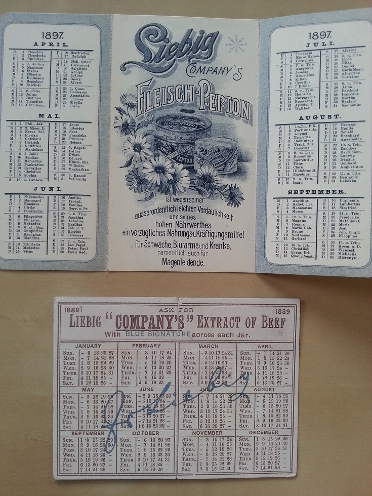 Die Haushaltungs-Kalender in Buchform hatte ich euch bereits vorgestellt. Seht dazu hier. Wer mehr Beiträge zu Liebig lesen möchte, der möge auf eines der nachfolgenden Schlagworte klicken.