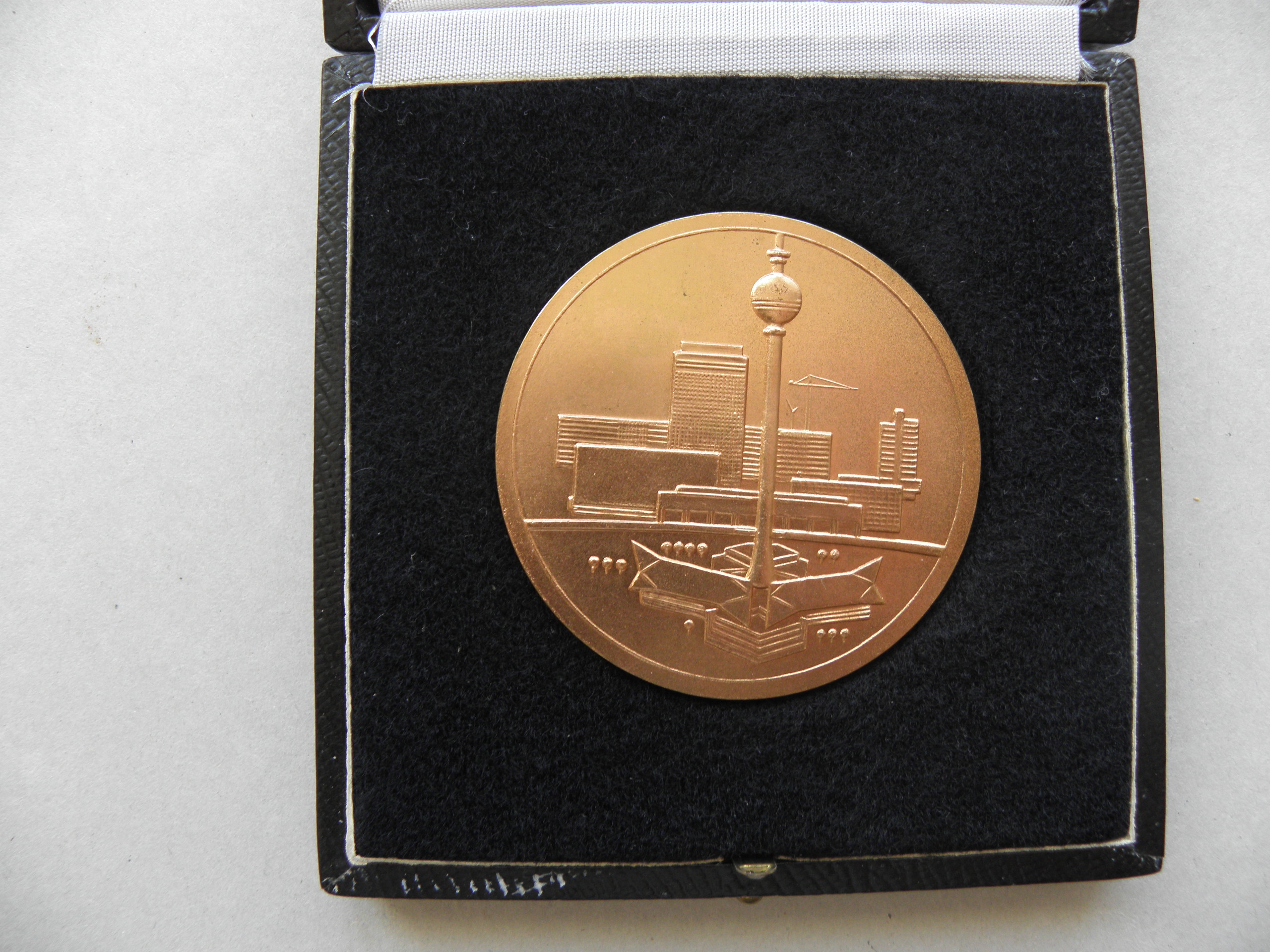 Weil meine Tante ganz vorbildlich bei der Planung des Fernsehturms und dem Aufbau des ihn umgebenden, modernen Plattenbauensembles mitgeholfen hat, erhielt sie seinerzeit diese schöne Medaille: