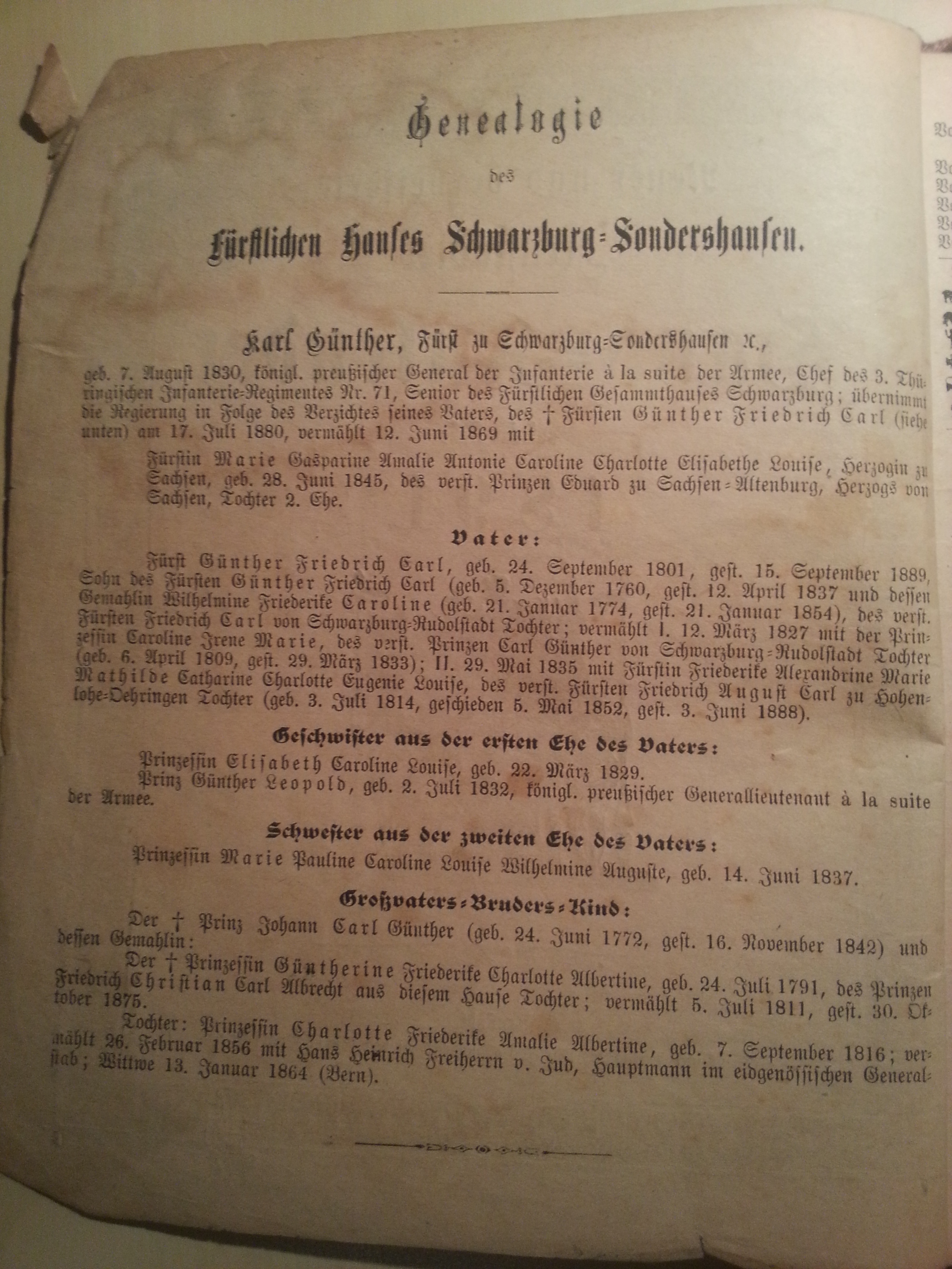 Ganz zu Anfang wird dem geneigten Leser der aktuelle Stand des ortsverantwortlichen Fürstenhauses nahegebracht. So etwas musste man damals wissen um sich bei Gesprächen in Gesellschaft nicht zu blamieren.