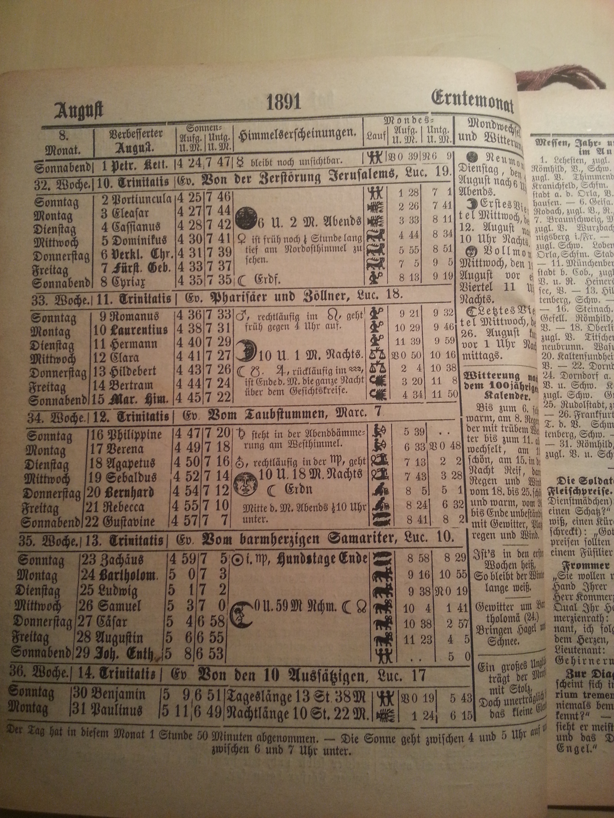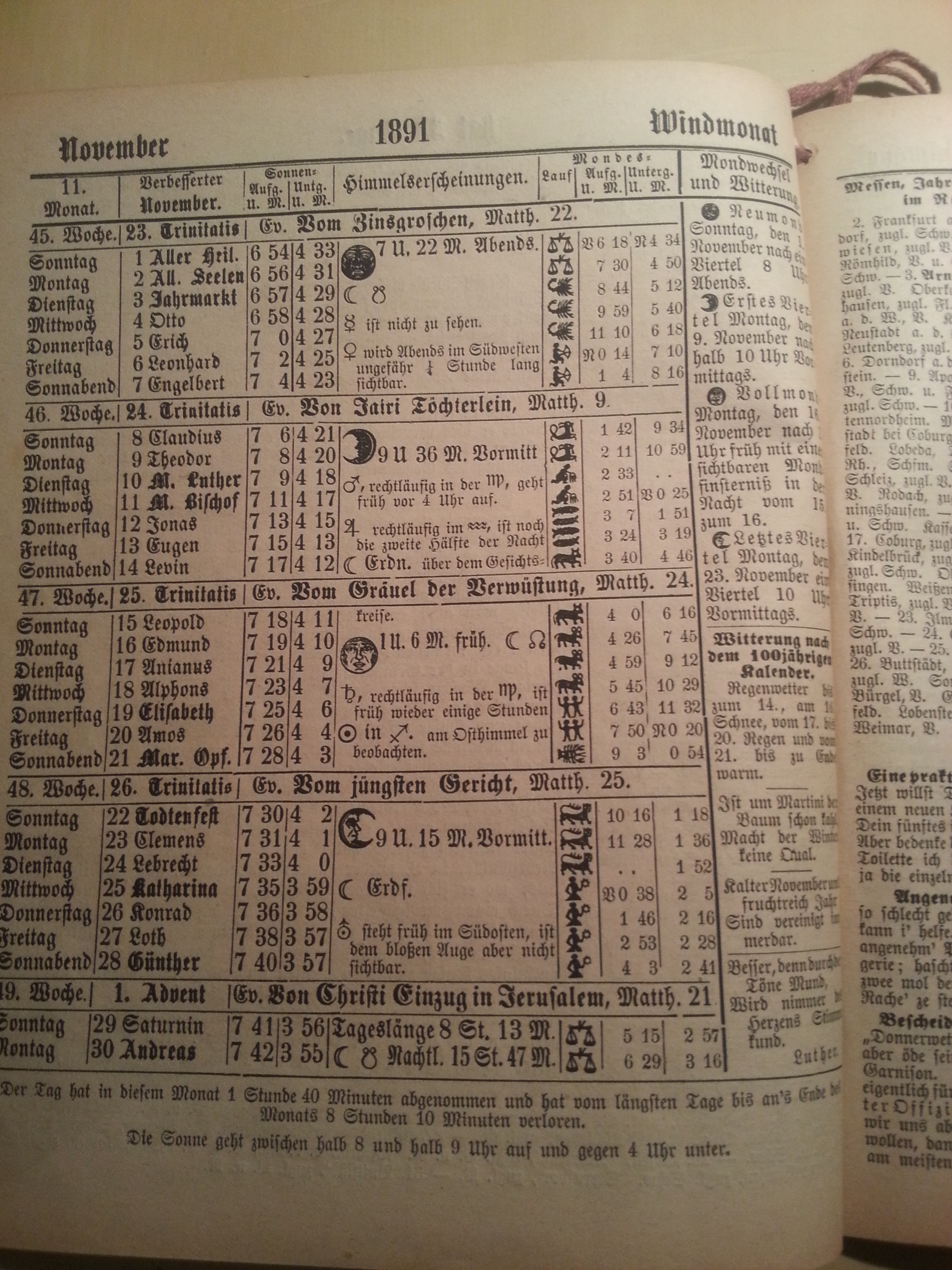 Ich habe zwar hier zwei Kalender fotografiert, allerdings zeige ich euch weiter unten nur den von 1891.
