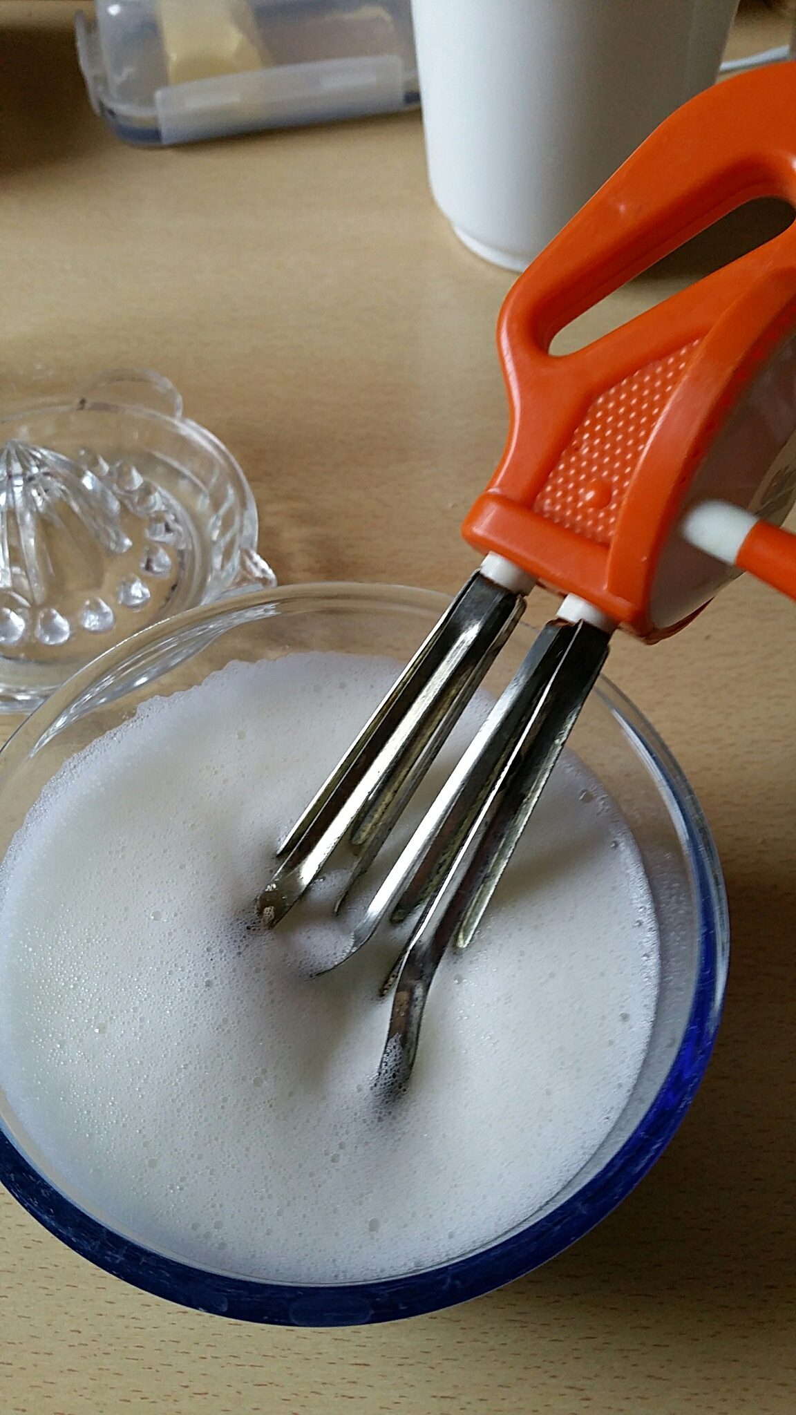 Hallo Leute, für meinen Rhabarber-Baiser-Kuchen habe ich zur Erzeugung des Eischnees den neulich beschrieben Schneebesen hervorgeholt, schön geputzt und mich um den Verstand gequirlt. Und siehe: 1A-Eischnee.