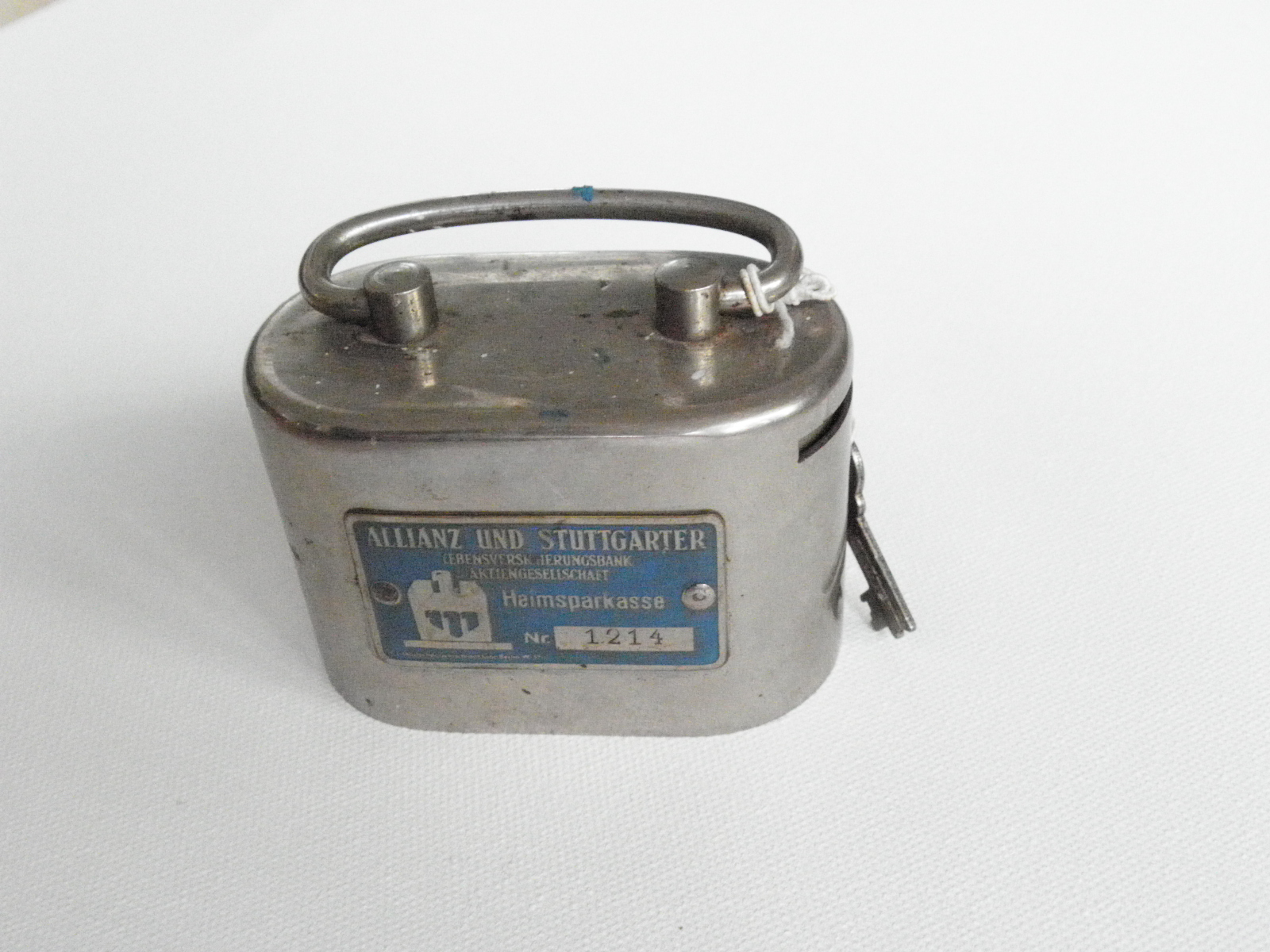 Übrigens: Ich habe zwar keine Heimsparbüchse der Sparkasse, kann aber mit einer von Allianz und Stuttgarter Versicherung dienen. Der Schlüssel lag zu Beginn meines Wissens noch in der Bank. War die Sparbüchse voll, ging man zur Sparkasse, der oder die Mitarbeiter(in) schloß auf, zählte das Geld und zahlte es auf das Sparbuch ein.