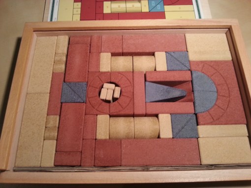 In den späteren Erweiterungs-Bausätzen und den großen Kästen gab es übrigens noch ansteckbare Balkone, Plastik-Bänke, -Stühle und -Sonnenschirme, die vor dem Haus aufgestellt werden konnten, Schaufenster-Elemente, eine drehbare Drehtür für den Laden und kleine Zäune und Bäume. Aber die haben meine Kindheit nicht überlebt und wurden irgendwann weitervererbt.
