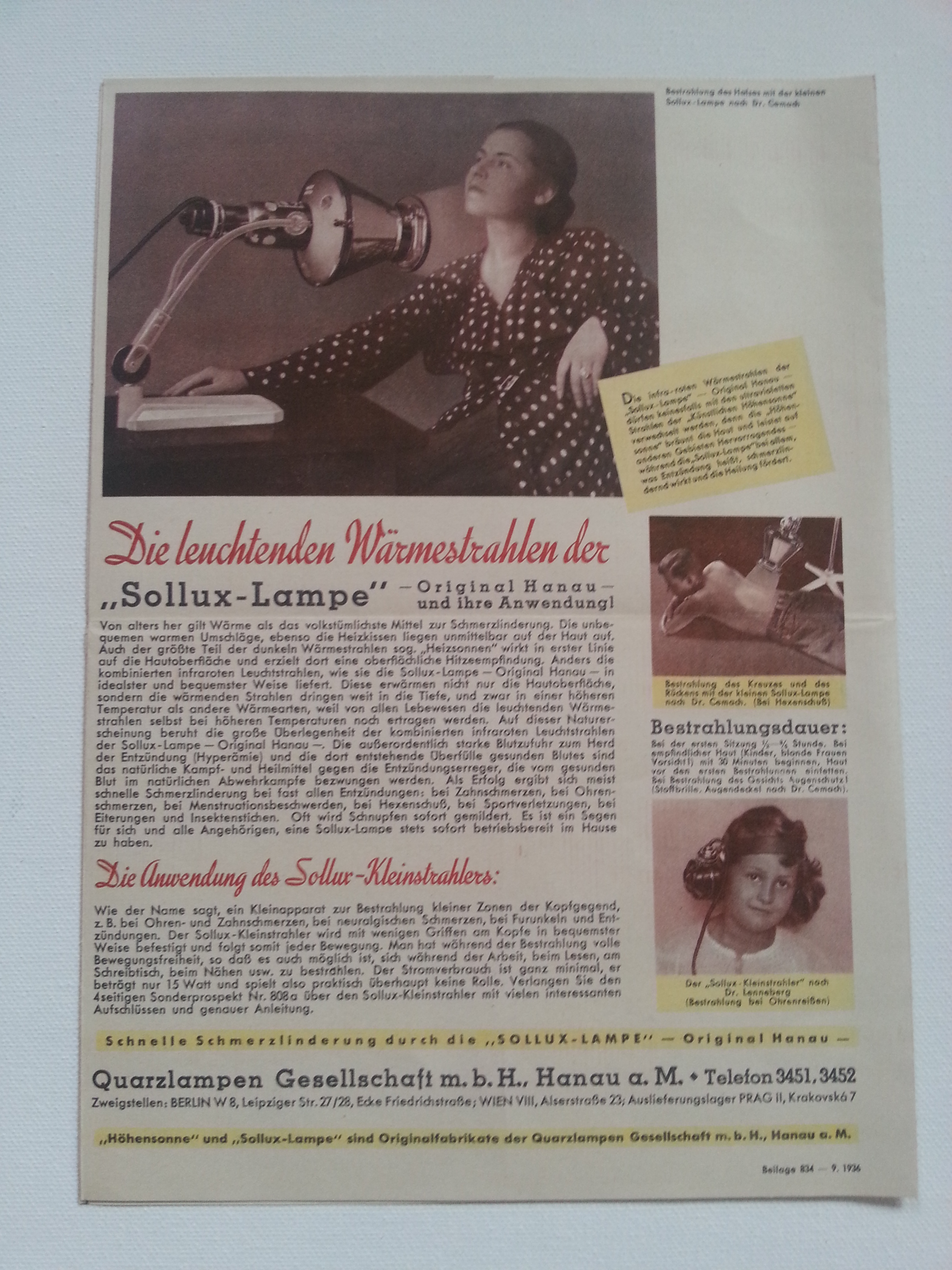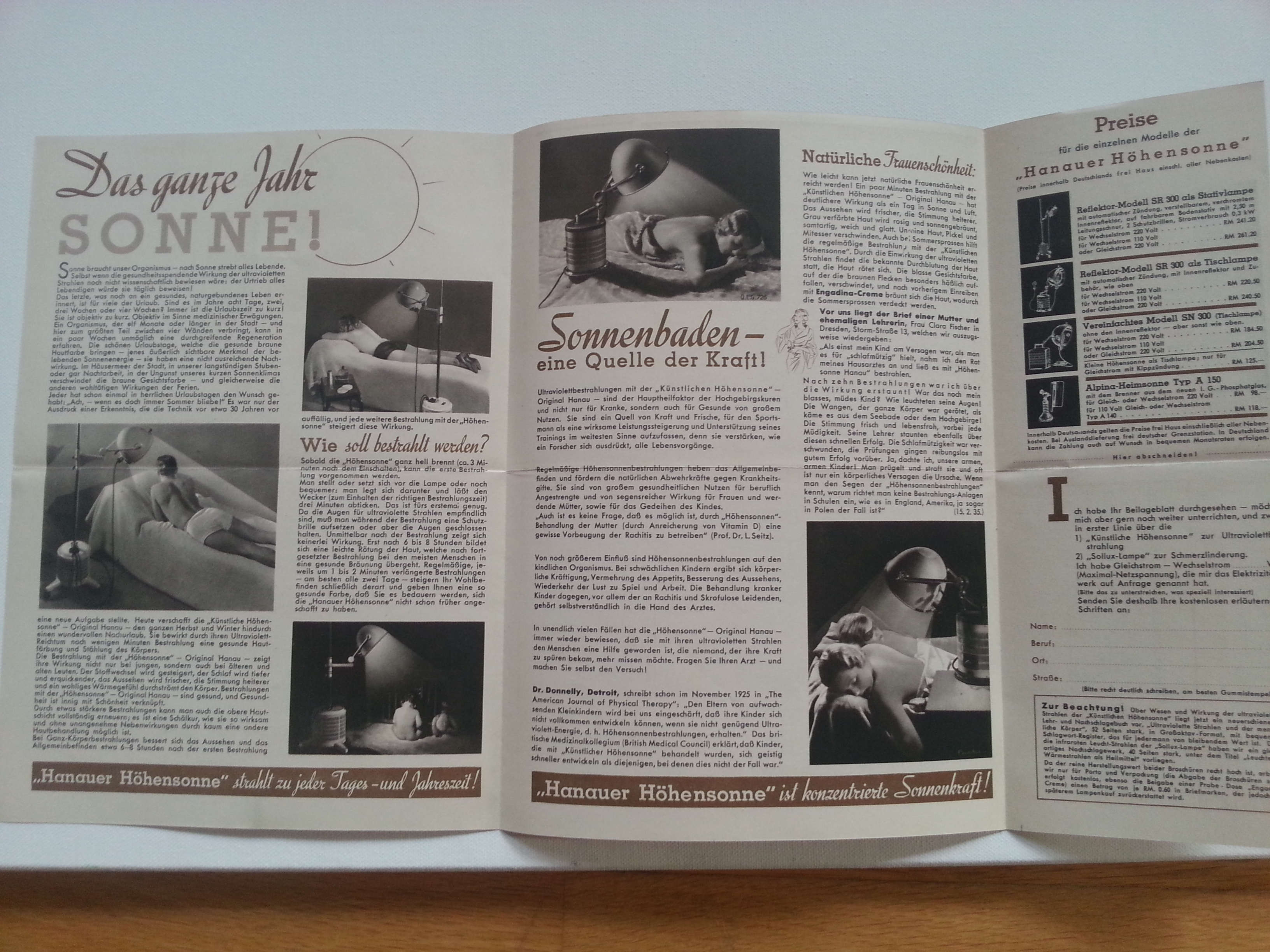 Für ca. 300 Reichsmark gab es diese Höhensonnen zu kaufen – das war 1936 eine Menge Geld.