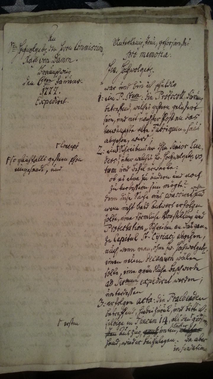 Zu guter Letzt hat der Herr Notar am 6. Januar 1777 noch eine kleine Zusammenfassung an Herrn von Damm geschickt, damit dieser auf dem